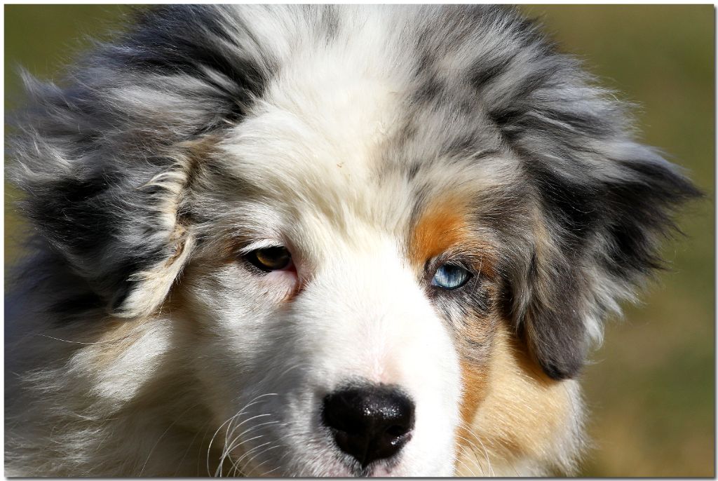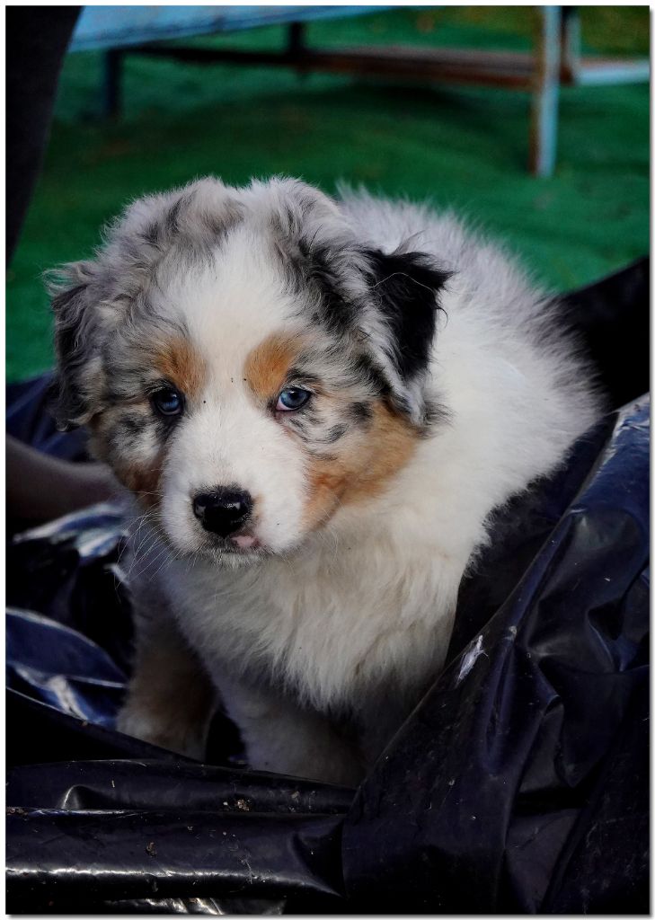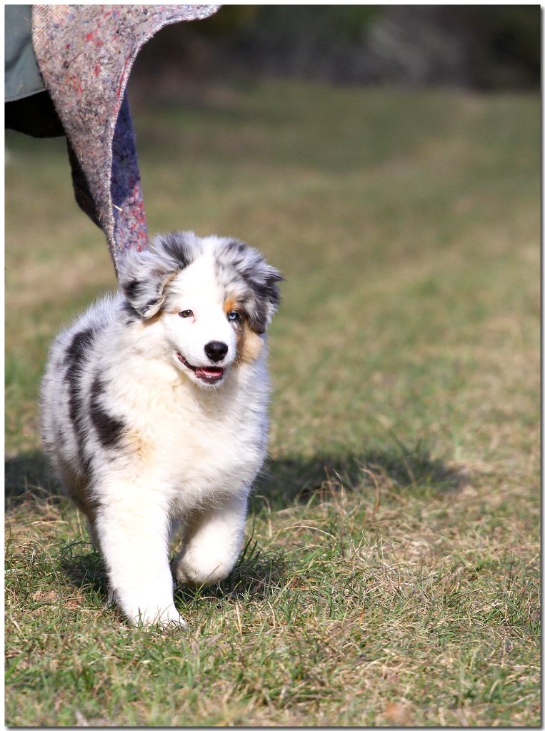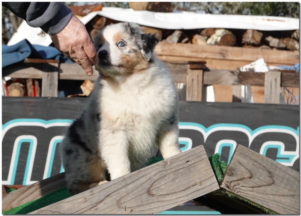 Très belle Femelle Bleue Merle Queue Longue non confirmable en exposition canine (tour de l'oeil non entouré de couleur), photos à 12 semaines