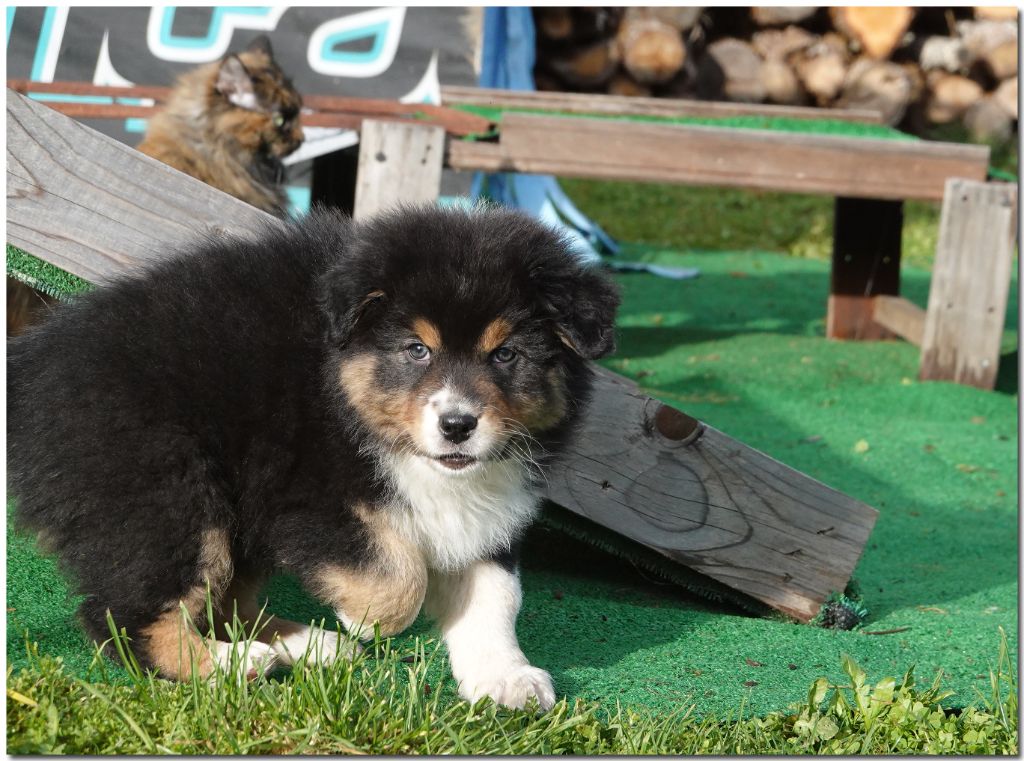 Les chiots seront sociabilisés et éduqués aux ordres de base à leur départ de l'Elevage.